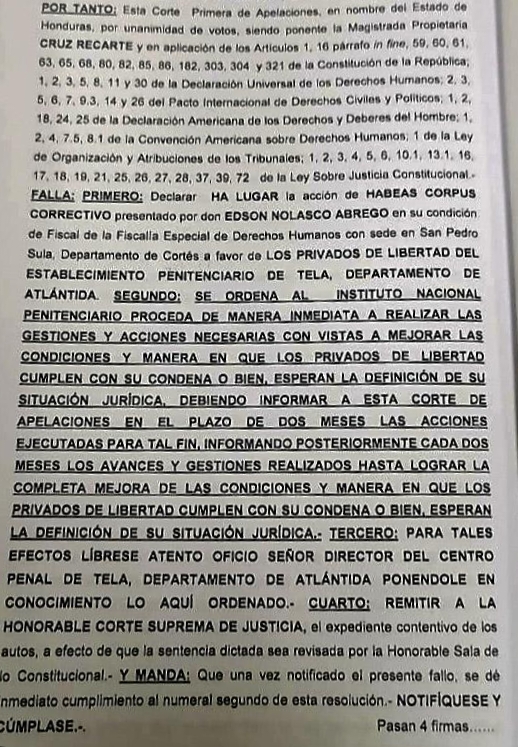 San Pedro Sula, Cortés.- Un plazo de dos meses concede la Corte de Apelaciones de la ciudad de La Ceiba a las autoridades del Instituto Nacional Penitenciario (INP) para que inicien trabajos de mejoramiento y remodelación del centro penal de Tela, esto a raíz de un recurso de Habeas Corpus presentado por la Fiscalía Especial de Derechos Humanos de San Pedro Sula.