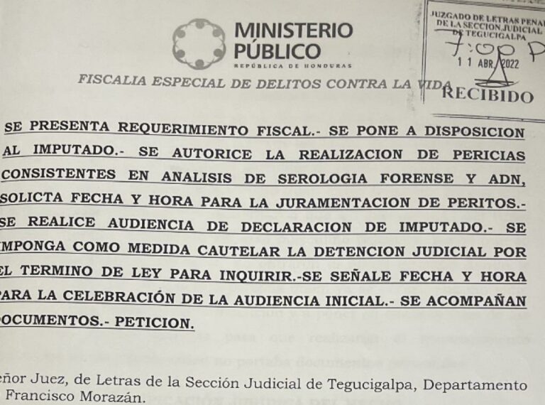 En la audiencia inicial, los fiscales presentaron indicios racionales para que el juez abriera el proceso y decretara la medida cautelar de prisión preventiva, señalando la audiencia preliminar para el miércoles 27 de abril de 2022 a las 11:00 de la mañana.