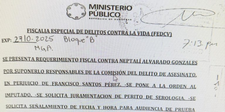 Tegucigalpa, Francisco Morazán. – Una condena de 15 años de prisión obtuvo la Fiscalía Especial de Delitos Contra la Vida (FEDCV), mediante la figura de procedimiento abreviado en contra de Neptali Alvarado González alias «Talconete»; quien admitió la responsabilidad penal de haber asesinado a Francisco Santos Pérez, el 8 de diciembre de 2025 en la aldea San Marcos, municipio de Curarén, departamento de Francisco Morazán.