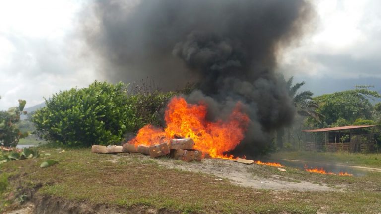 La Ceiba.- La Fiscalía Especial Contra el Crimen Organizado (FESCCO), por orden del Juzgado de Letras de lo Penal, destruyó este día lunes 07 de mayo de 2018, ocho cajas conteniendo más de 300 paquetes de marihuana.