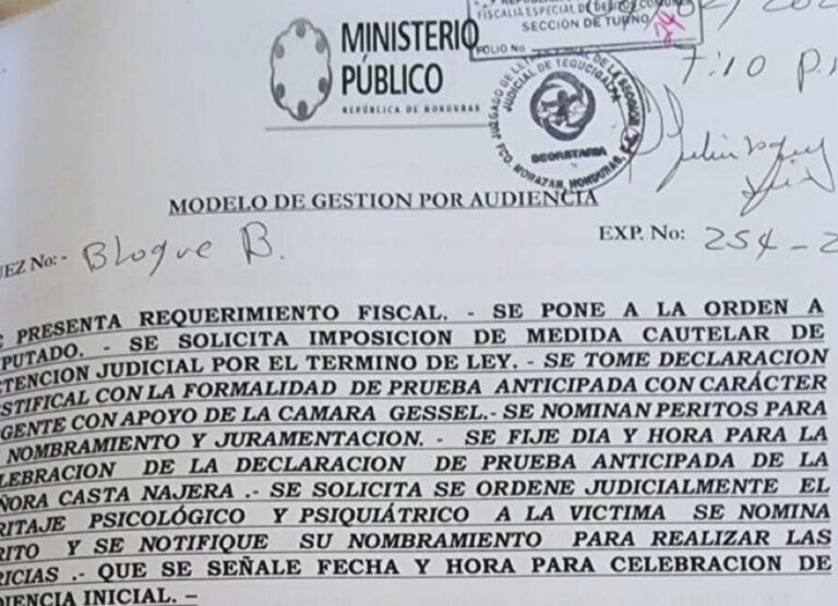 Tegucigalpa, Francisco Morazán.– En audiencia inicial, la Fiscalía Especial de Protección al Consumidor y Adulto Mayor (FEP-CAM) obtuvo auto de formal procesamiento con prisión preventiva en contra de Edy Javier Castro Nájera por suponerlo responsable de los delitos de maltrato familiar agravado y lesiones.