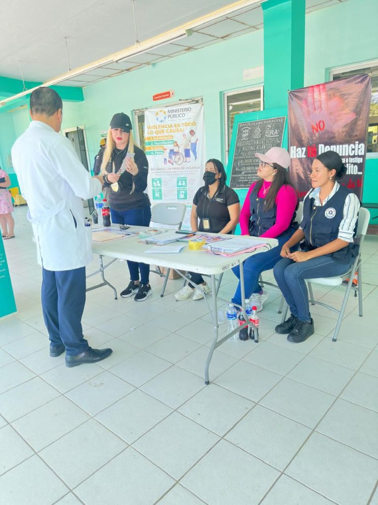 Como parte de la labor comunitaria, el MAIE participó en una feria comunitaria instalada en el Hospital Regional Atlántida, donde brindó asesoría sobre violencia doméstica, maltrato familiar y abuso sexual, además de entregar trípticos informativos a los asistentes.