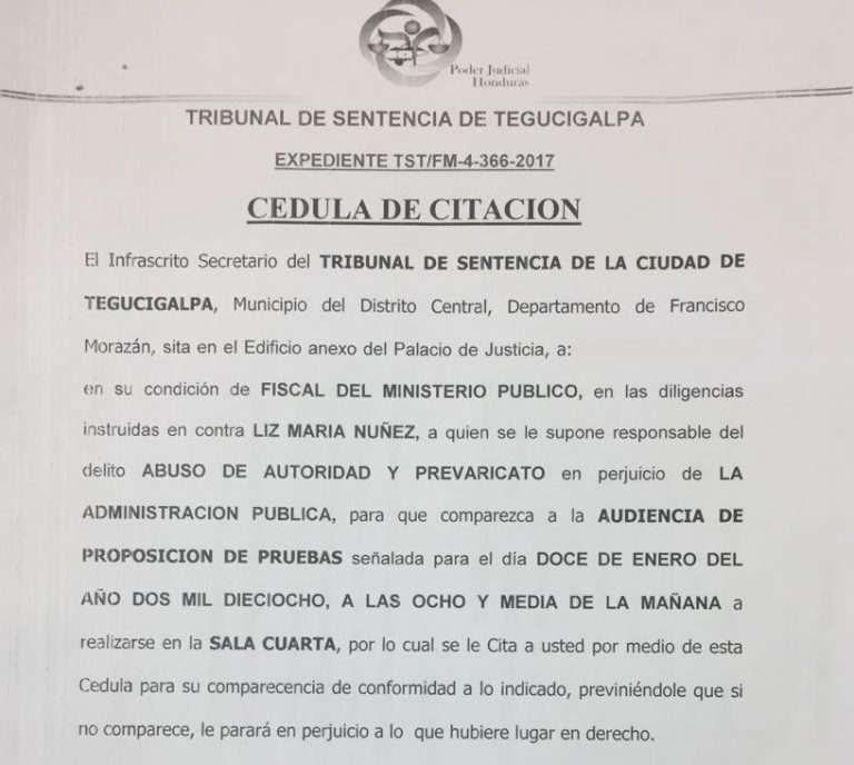 Tegucigalpa. Francisco Morazán. La Fiscalía Especial para el Enjuiciamiento a Funcionarios y Servidores del Sector Justicia (FEEFS-SJ) evacuará mañana viernes la Audiencia de Proposición de Pruebas en la causa que se le sigue a la Jueza con Jurisdicción Nacional, Liz María Ernestina Núñez Cardona, por suponerla responsable de los delitos de Prevaricato y Abuso de Autoridad en el sonado caso “Shalom”.