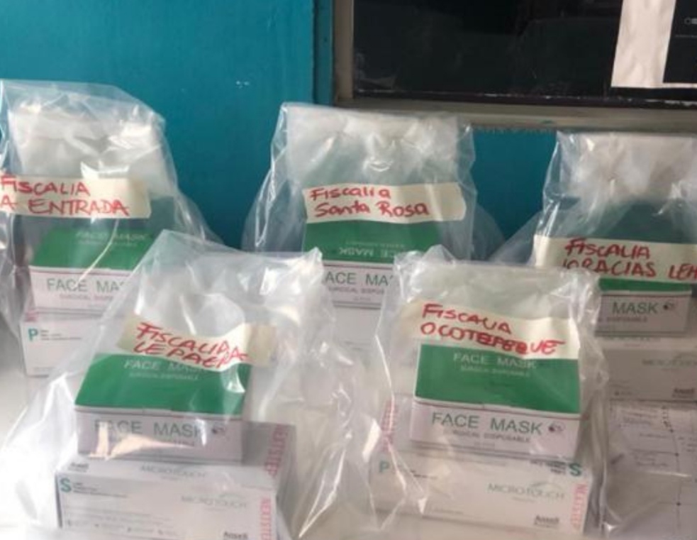 En ese sentido, se sigue enviando insumos para evitar el contagio del Covid-19 a las Fiscalias Regionales y Locales, para que por medio de sus coordinadores se pueda distribuir entre el personal de turno.