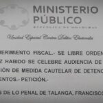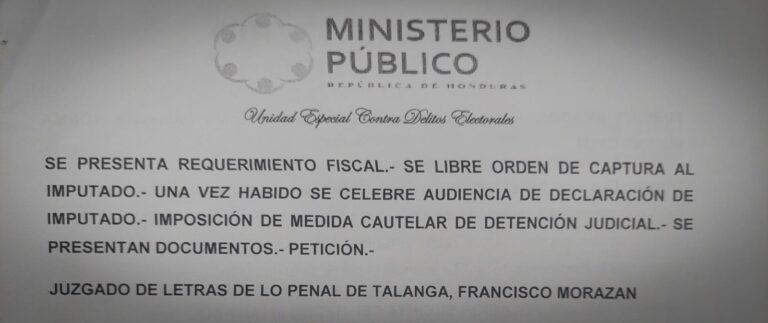 Tegucigalpa, Francisco Morazán. Fiscales de la Unidad Especial contra Delitos Electorales, en representación de los intereses generales de la sociedad, acudieron hoy a la audiencia de declaración de imputado que se desarrolló en contra de la ciudadana Nancy Marina Avilez Santos, hija del ex alcalde de Talanga Roosevelt Eduardo Avilez, acusada penalmente por el delito de falsificación de documentos electorales y quien tras tener conocimiento de una orden de captura en su contra, se presentó de forma voluntaria ante la jurisdicción competente en el municipio de Talanga, Francisco Morazán.