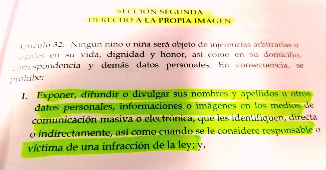 Importante es mencionar que en atención al artículo 32 del Código de la Niñez y Adolescencia de Honduras, esta oficina de Relaciones Públicas no proporciona mayores detalles en relación a la identidad u otros datos que permitan la identificación de niños y niñas víctimas de delitos y en conflicto con la Ley, en observancia al respeto del Derecho a la Propia Imagen reconocida a ellos y ellas.