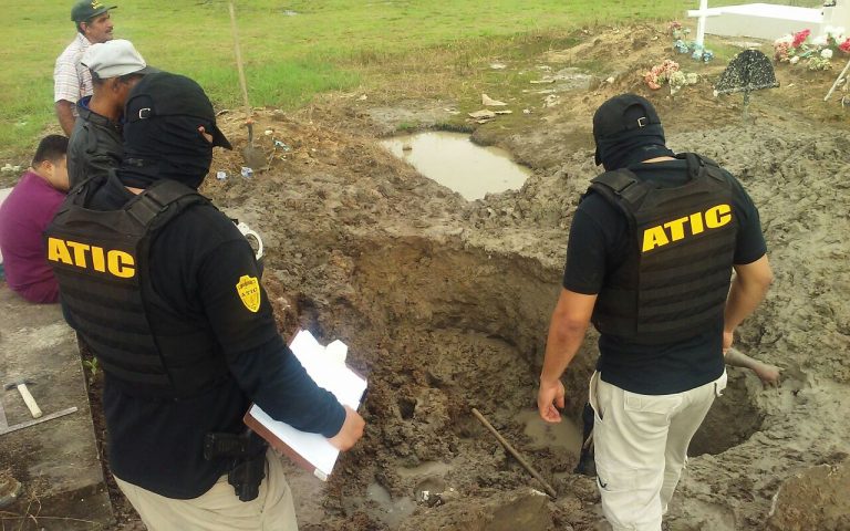 En la acción, también se realiza la exhumación del cadáver del señor Evelio Martínez Ortiz en el Cementerio Municipal de Sonaguera en Colón.