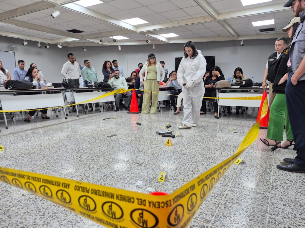 Como parte de este proceso, se desarrolló una jornada formativa especializada en procesamiento de escenas criminales, orientada a garantizar investigaciones más efectivas, técnicas y científicas, en la cual se abordó el manejo adecuado de la escena del crimen, la investigación de delitos contra la vida y el tráfico de drogas, la exhumación de cadáveres y restos humanos, el acordonamiento de la escena, así como la correcta recolección y transporte de indicios.
