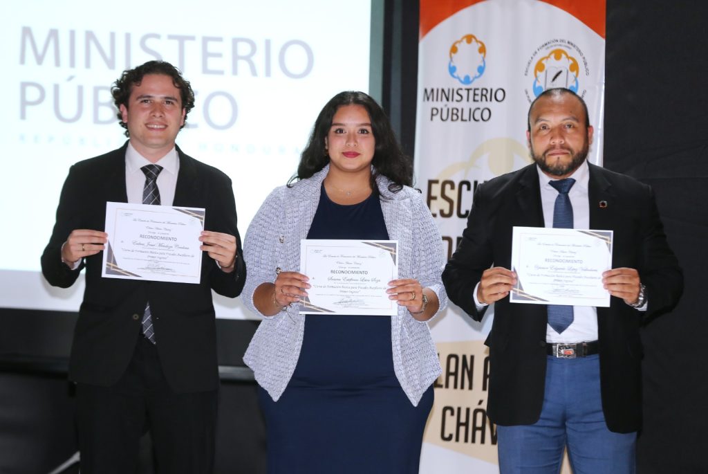 En la clausura participaron: EL Subdirector de Fiscales, abogado Víctor Carrasco, el director de la Escuela de Formación, doctor Carlos David Cálix Vallecillo y los miembros de la comisión de selección y propuesta de fiscales, los abogados Mercedes Dubón y David Amaya.