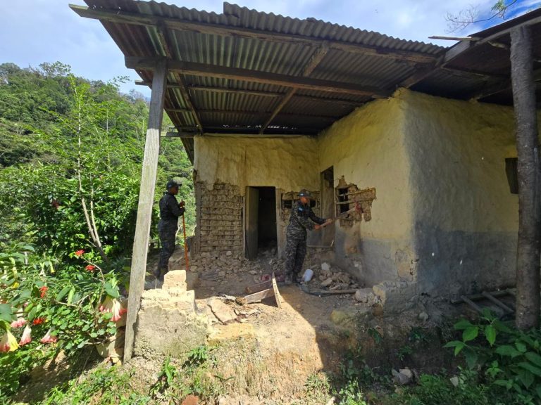 En total fueron destruidas 11 viviendas, tres kilómetros de cerco y una carretera inhabilitada; asimismo, se decomisó una motosierra, cuatro armas de fuego tipo escopeta y 33 cartuchos para escopeta calibre 12 y 22.