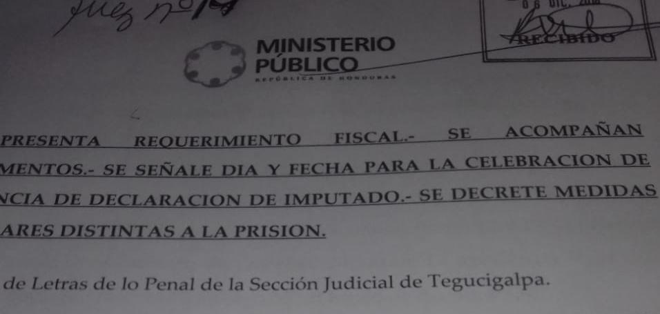 Se trata de un Requerimiento Fiscal por el delito de abuso de autoridad, por haber otorgado de forma irregular la licencia ambiental para la construcción de la polémica represa sobre el río Petacón entre las comunidades de Lepaterique y Reitoca, Francisco Morazán.