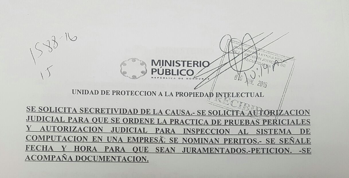 En el expediente judicial consta que las diligencias investigativas se dieron a raíz de una denuncia interpuesta el pasado 03 de mayo del presente año por los apoderados legales de la Empresa Microsoft Corporation.