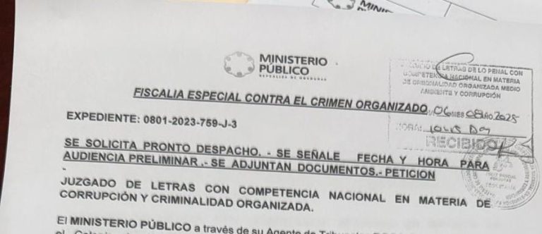 Toda esta argumentación se sustenta en escritos y personamientos de la Fiscalía solicitando pronto despacho que fueron presentados desde abril a agosto del presente año para que se señale fecha y hora para la celebración de la audiencia preliminar en las causas instruidas a varios integrantes de esa estructura criminal.