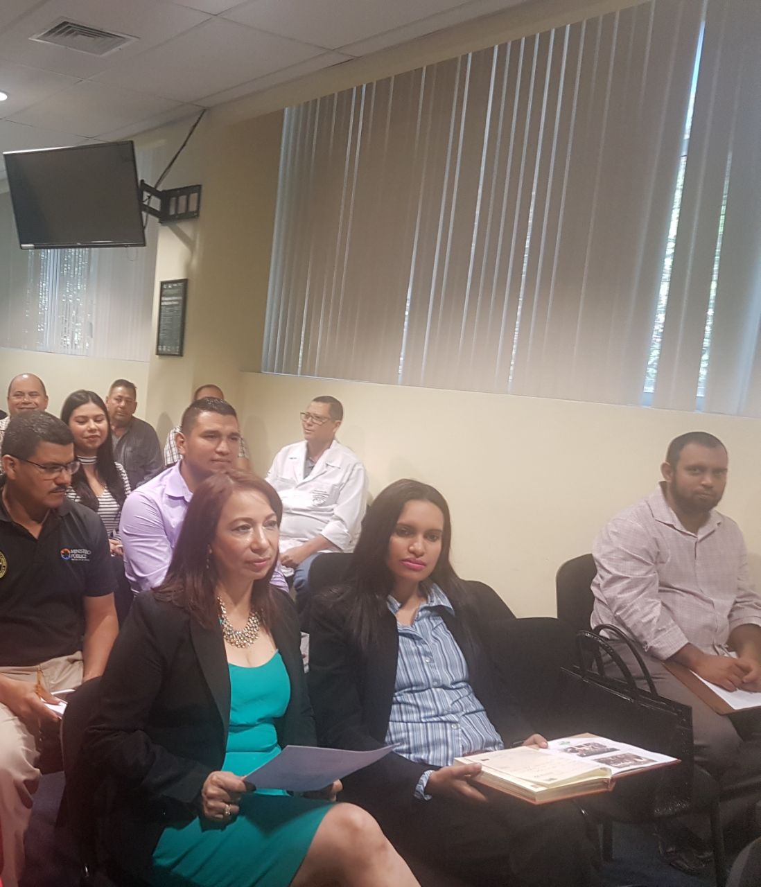 La jornada de capacitación se realizó en la Sala de Conferencias y Usos Múltiples Abog. Humberto Palacios Moya de la Dirección de Medicina Forense y la disertación estuvo a cargo de los expertos en Marcas y Patrones Ingeniera Ana Raquel Pineda y Doctora Berta Lizeth Zeron.