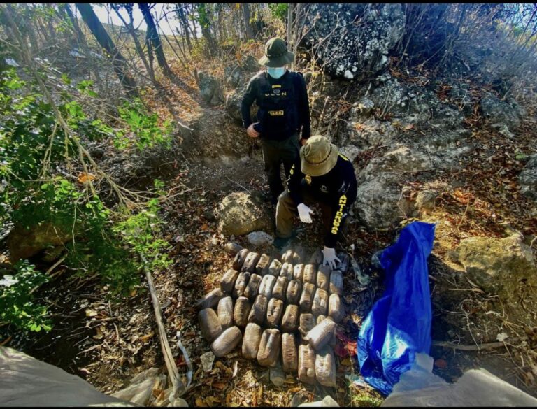 El operativo de captura y decomiso de 77 libras de marihuana lo efectuó la Dirección de Lucha Contra el Narcotráfico (DLCN) en la comunidad en mención, evidencia que fue encontrada en el interior de un saco color azul y que gracias a una minuciosa inspección se encontró enterrado en una parte del solar de la vivienda.
