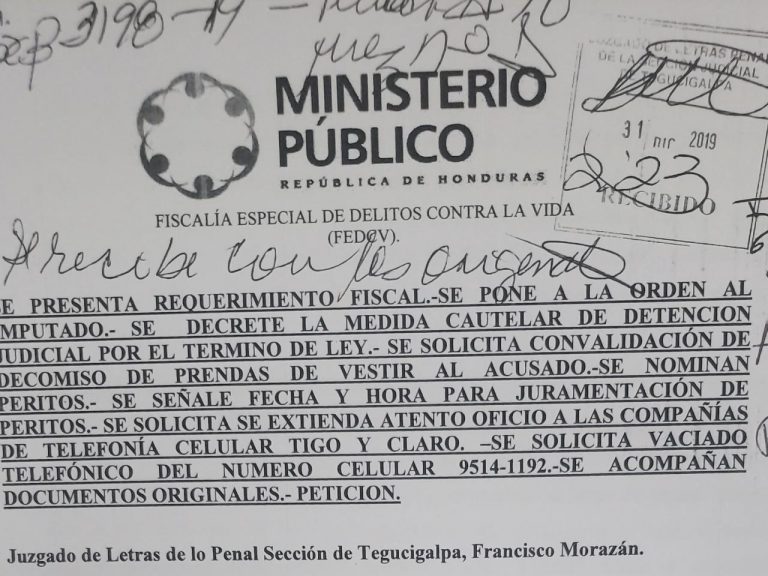 Tegucigalpa, Francisco Morazán.- Tras concluir la audiencia inicial, la Fiscalía Especial de Delitos Contra la Vida (FEDCV) logró un Auto de Formal Procesamiento con Prisión Preventiva en contra de Delio Antonio Hernández Arriola por el delito de homicidio en perjuicio de José de la Cruz Gonzáles Martínez.