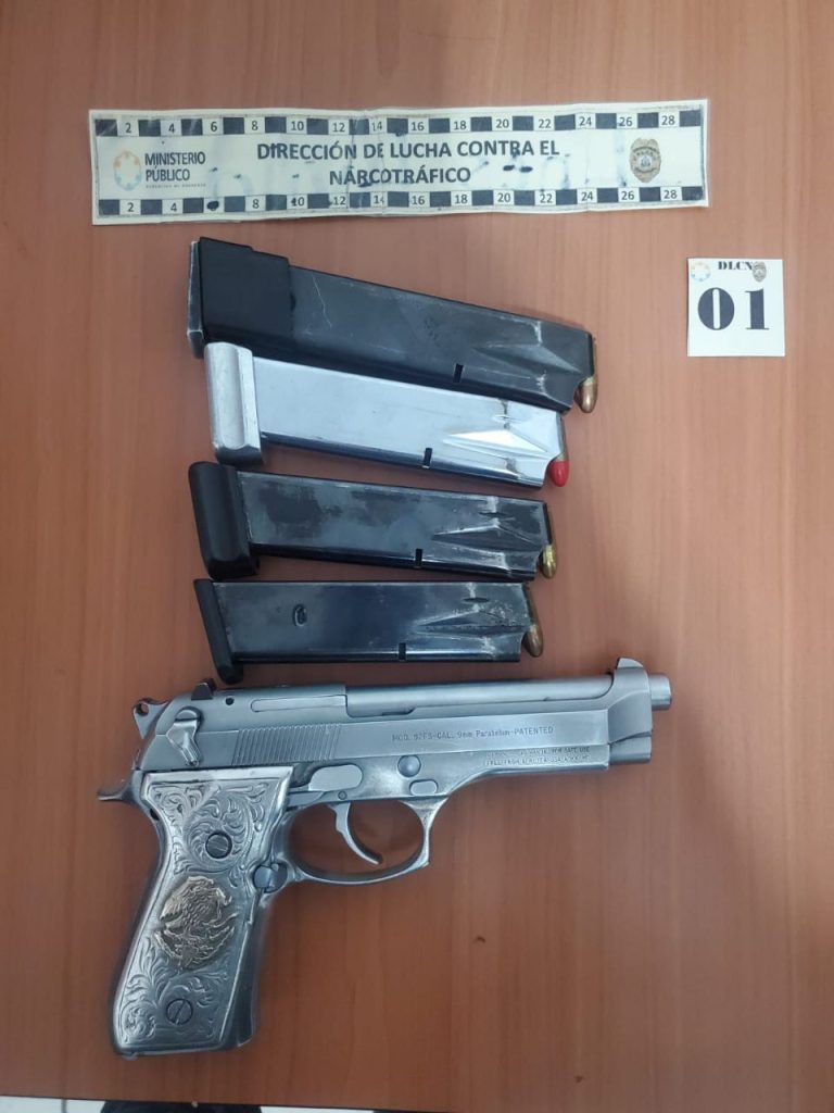 Asimismo, en la inspección se hizo el hallazgo de 19,300 lempiras, trescientos dólares, un arma de fuego tipo escuadra marca Parabellum, un lote de joyas, varios aparatos celulares y un vehículo tipo pick up.