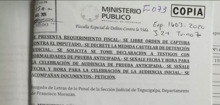 Pérez Rodas fue aprehendido el pasado martes 1 de septiembre en la capital por parte de agentes de la Dirección Policial de Investigaciones (DPI) en cumplimiento a una orden de captura emitida por el Juzgado de Letras de la Sección Judicial de Tegucigalpa en fecha 28 de agosto de 2020.