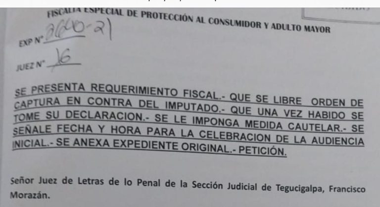 Tegucigalpa, Francisco Morazán. La Fiscalía Especial de Protección al Consumidor y Adulto Mayor (FEPCAM) tras demostrar suficientes elementos probatorios indiciarios durante audiencia inicial obtuvo auto de formal procesamiento con prisión preventiva en contra de Oswaldo Bonilla Amaya acusado por la comisión del delito de estafa agravada en perjuicio de un adulto mayor.