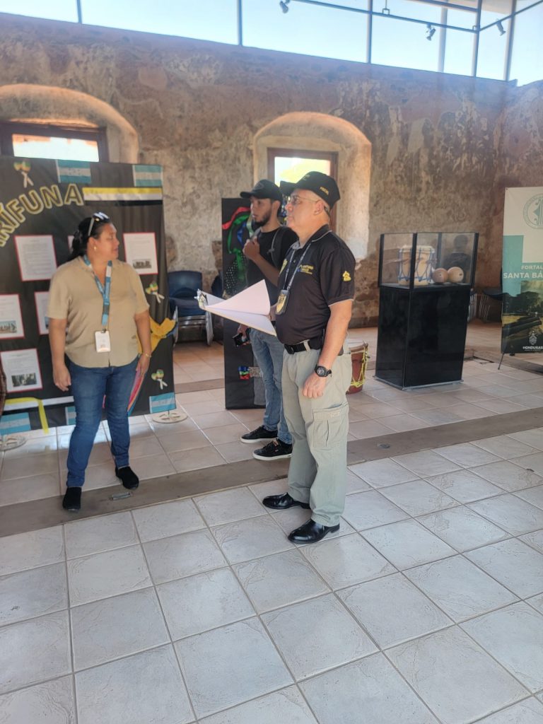 Durante la inspección, se constató que los dormitorios, actualmente utilizados como bodegas, presentan daños en el techo, mientras que la antigua cocina ha sido restaurada y funciona como salón de exhibiciones temporales dedicado a la cultura garífuna.
