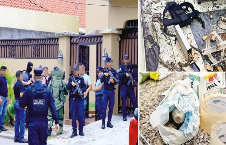 Los agentes de tribunales del Ministerio de la Fiscalía Especial Contra el Crimen Organizado (FESCCO), al presentarse a la escena de crimen para realizar las primeras diligencias investigativas, encontraron un fuerte arsenal desde lanza granadas y diferentes armas de fuego y municiones de distintos calibres.