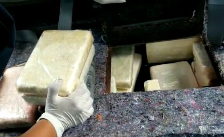En el trabajo minucioso se encontró un compartimiento falso entre la carrocería y se descubrió el cargamento del alucinógeno, por lo que los equipos fiscales e investigadores procedieron a formalizar el proceso por el delito de tráfico de drogas agravado.