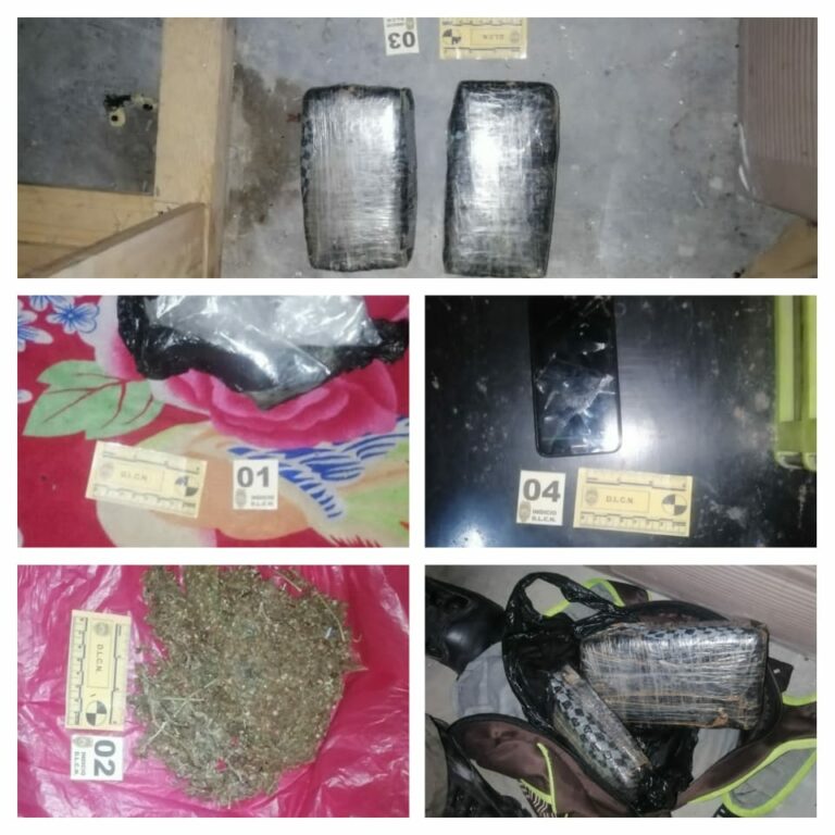 En conformidad a la ley, las autoridades pudieron decomisar seis productos de hierba seca, supuesta marihuana y un teléfono celular.