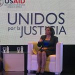 En el panel “Unidos por la Justicia”, la Subdirectora de Fiscales compartió tribuna con el Presidente de la Corte Suprema de Justicia (CSJ), Rolando Argueta Pérez, el Comisionado Nacional de los Derechos Humanos (CONADEH), Roberto Herrera Cáceres y la viceministra de Seguridad Alejandra Hernández, al igual que autoridades de USAID.