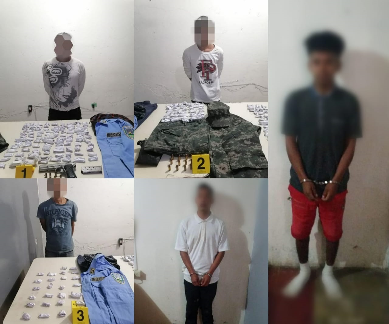 Los detenidos son: Franklin de Jesús Talavera Rodríguez, Rogelio Armando Rodríguez y Marlon Enrique Paz Duarte a quienes se les presentó requerimiento fiscal por suponerlos responsables de los delitos de tráfico de droga en perjuicio de la salud pública, portación ilegal de arma de fuego de uso comercial y portación ilegal de municiones en perjuicio del orden público y uso indebido de uniforme policial y militar en perjuicio de la Fe Pública.