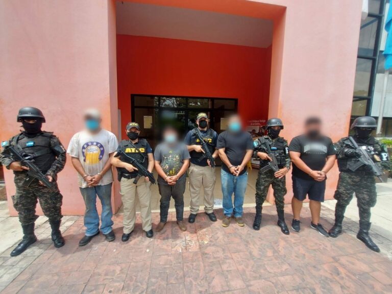 En la operación antidrogas se arrestó a Marcio Nahún Ordóñez Matamoros, Alex Enrique Mejía Aguilar y Kevin Guillermo Bueso Baide a quienes se les supone responsable del delito tráfico de drogas agravado y en el caso de Jairo Manuel Castro Guzmán se le imputó el ilícito de tenecia ilegal de arma de fuego de uso comercial.
